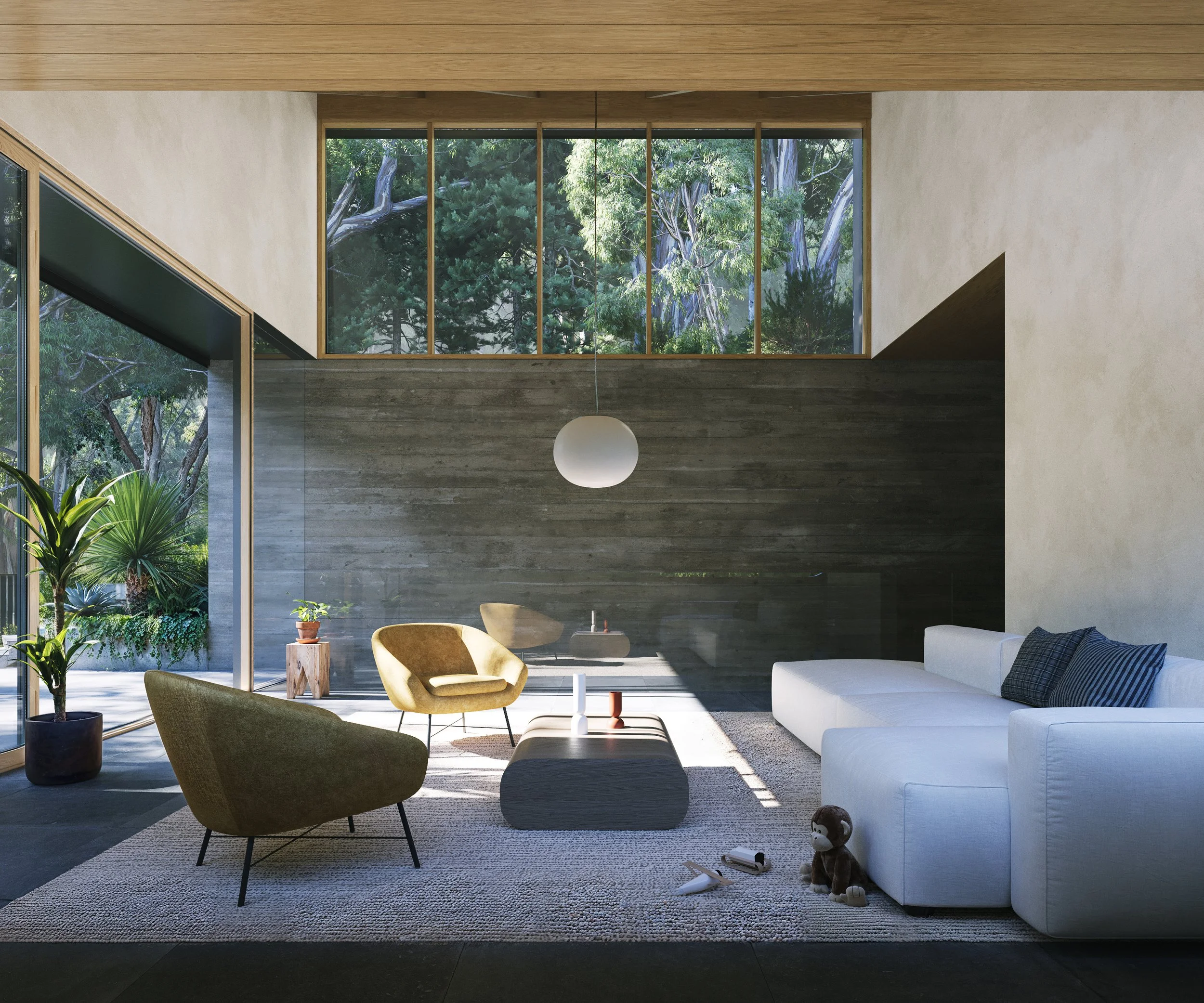 There were a few main criteria we had to contend with and address simultaneously: First, planning guidelines for hillside lots in Oakland; second, retaining walls must be stepped to counter hydrostatic pressures of the soil; and lastly, the experience of the house shouldn’t feel onerous due to the quantity of stairs.